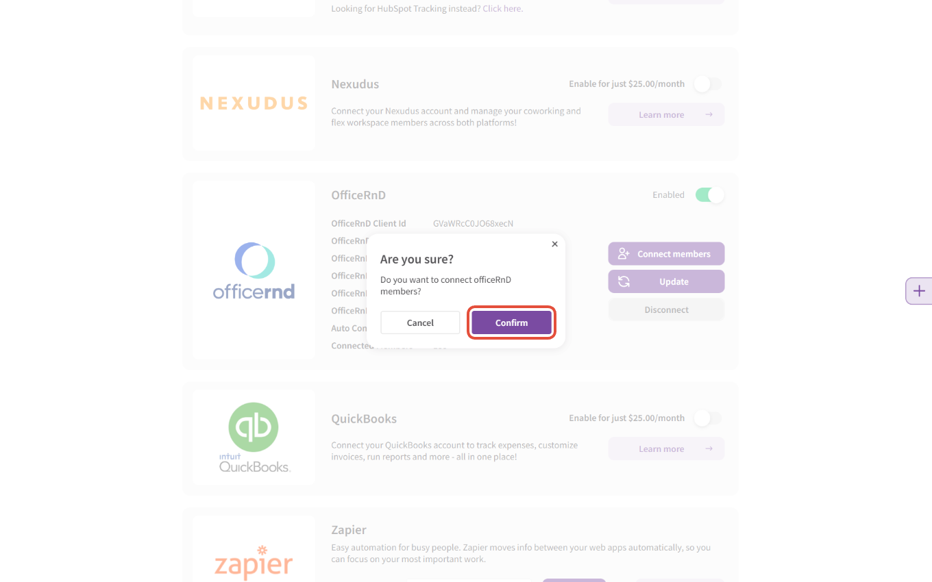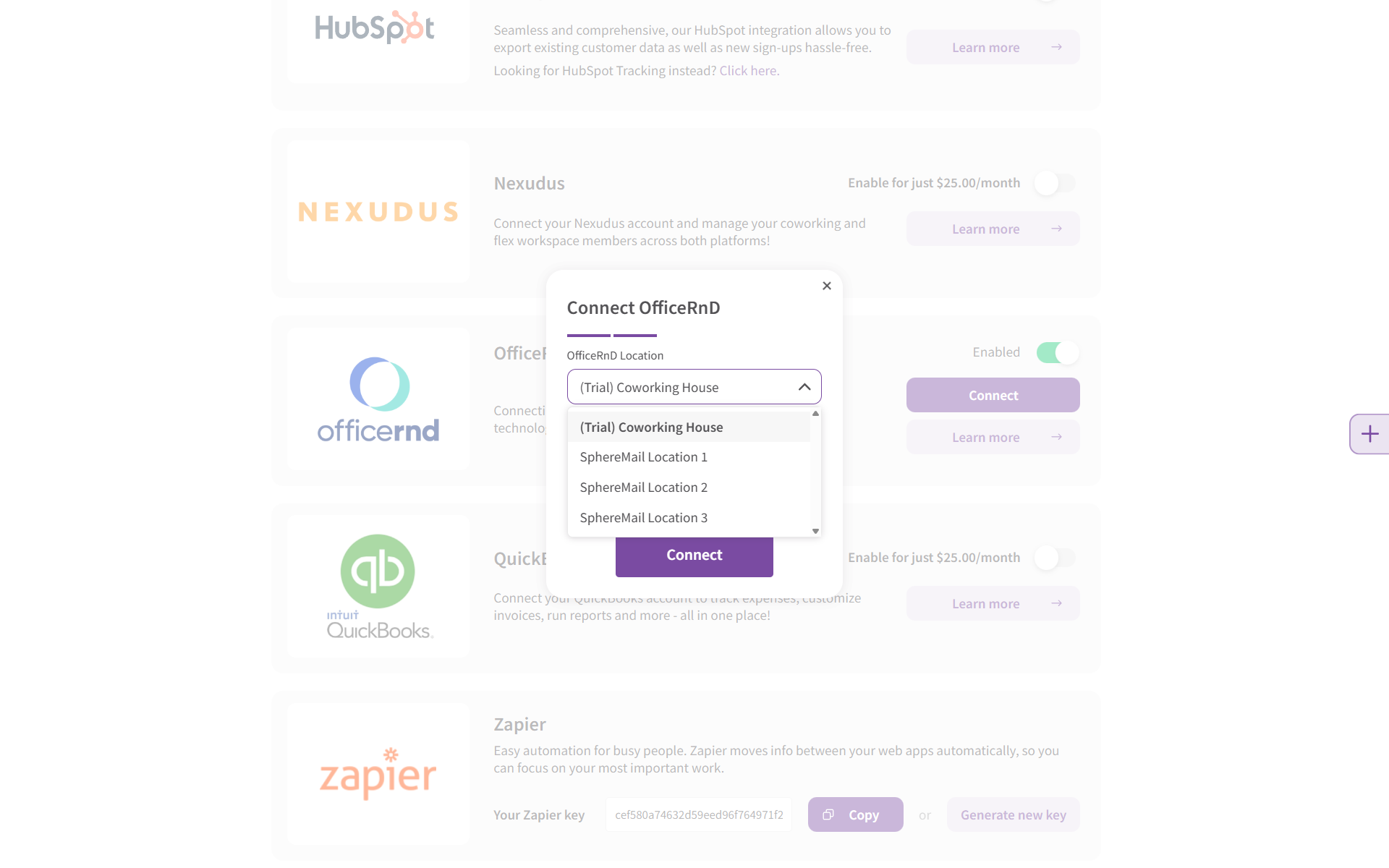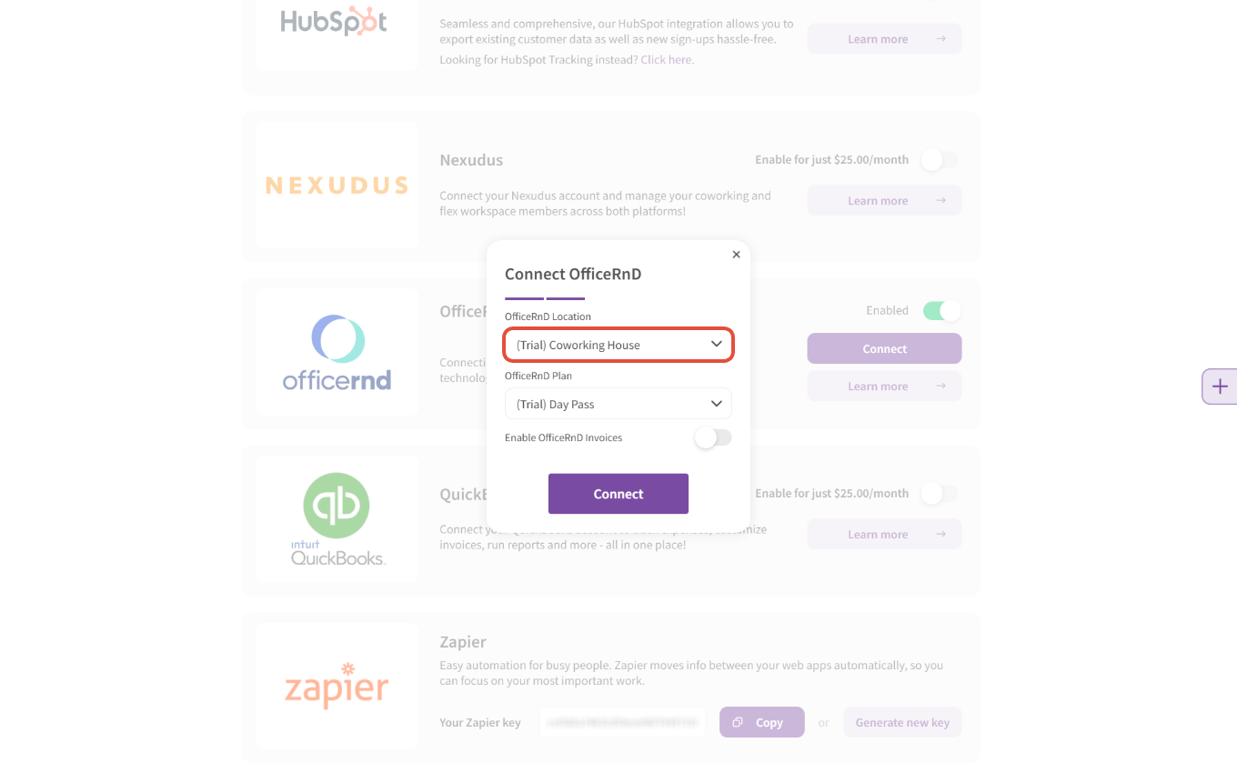 - Next, you'll need to select the OfficeRnD location you'd like to connect:
