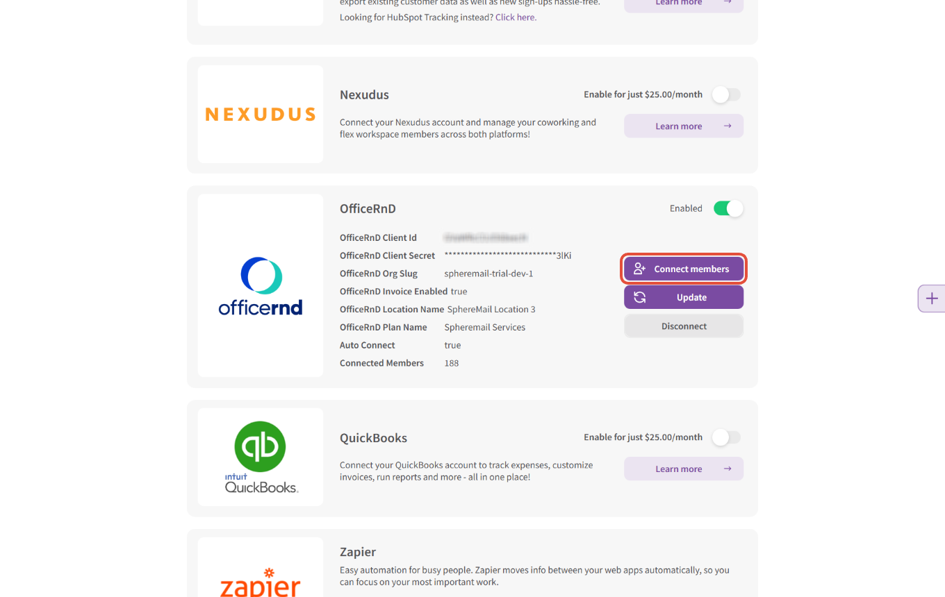 Note: For new customers who’ll sign up to your SphereMail portal AFTER you’ve set up your OfficeRnD integration— You won’t need to do anything; the system will connect them automatically as long as they’ve signed up on SphereMail using the same email addresses you have on file for their member accounts on OfficeRnD.